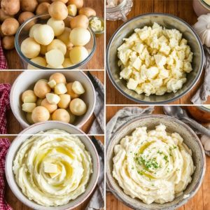 Jeg lager denne potetmosen når jeg vil gi middagen en ekstra koselig følelse. En gang prøvde jeg ovnsbakt hvitløk – det ga en søtere smak. Ikke skrell potetene hvis de har tynt skall. Det gir mer tekstur og ekstra smak.
