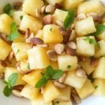- Rist nøttene i en tørr panne og dryss dem over ananasen før servering.