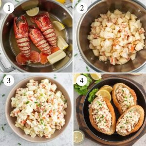 - Monter hummerrollene: Fyll hvert brød med hummerblandingen, og pynt med finhakket gressløk. Klem over litt fersk sitronsaft rett før servering.