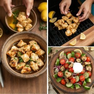 Jeg elsker hvordan disse kyllingspydene kombinerer den saftige kyllingkjøttets milde smak med den friske sitronens syrlighet og oreganoens aromatiske, litt skarpe urtenoter. Når kyllingen grilles, får den en gyllen, litt sprø overflate som bryter nydelig med det møre og saftige kjøttet inni. Dressingen med yoghurt og mynte gir et friskt og kjølende preg som balanserer grillens intense smaker. Salaten med tomat, agurk og rødløk tilfører både knas og saftighet, og gir hele retten en herlig friskhet jeg setter stor pris på.