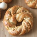 - Pensle og stek: Pensle bollene med sammenvispet egg og dryss over hakkede mandler. Stek i en forvarmet ovn på 200°C i 12–15 minutter.