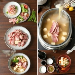 - Kok opp dashi, soyasaus og mirin i en stor gryte eller hotpot. Hold kraften varm, men ikke fosskokende.