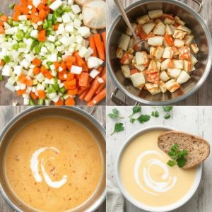 - Jevn suppen: Rør inn matfløte og krydre med paprika, cayenne, salt og pepper. Bruk en stavmikser for en silkemyk tekstur.