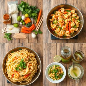 Servering: Legg nudlene på tallerkener, topp med rekene, vårløk og koriander. Server med limebåter for ekstra friskhet.