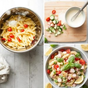 Kok pastaen til den er al dente for å bevare den rette konsistensen, spesielt hvis salaten skal stå en stund. - Manglende smak: