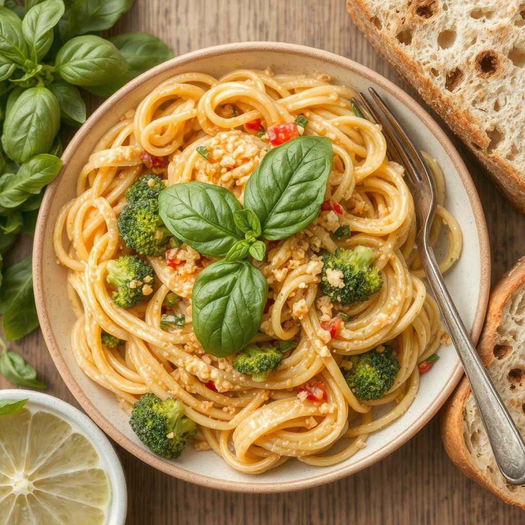 Pasta med kremet saus er en rett som har vært elsket i mange år, og som har sitt utspring i Italia. Den har gjennom tidene blitt tilpasset mange forskjellige versjoner. Denne retten er en frisk og sunn variant som kombinerer pasta med en kremet urte- og sitronsaus, som både gir et friskt og lett preg til retten. Jeg ble introdusert til denne retten på en reise til Italia, og siden da har jeg laget min egen versjon med fullkornspasta og plantebaserte ingredienser. Retten har blitt en favoritt i huset, og den er både smakfull og næringsrik.
