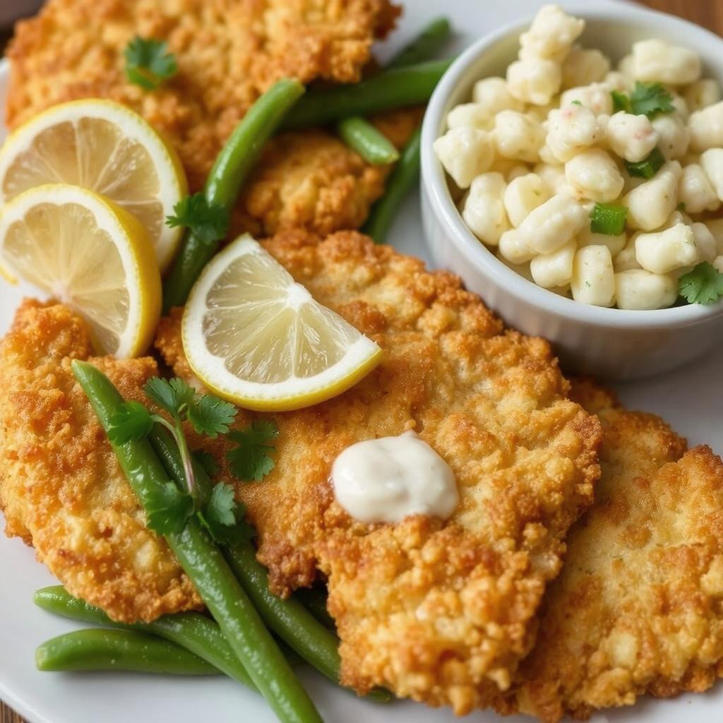 Schnitzel var alltid en spesiell rett hjemme hos oss, spesielt på lørdager. Jeg husker hvordan vi samlet oss rundt bordet med skiver av sitron, poteter og en enkel salat som tilbehør. Et tips er å banke kjøttet jevnt og tynt før paneringen – det gir et perfekt sprøtt resultat. Jeg liker også å tilsette litt parmesan i brødsmulene for ekstra smak.