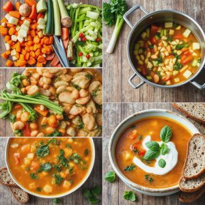 La suppen koke i 10–12 minutter på svak varme til grønnsakene er møre men fortsatt har litt bitt.