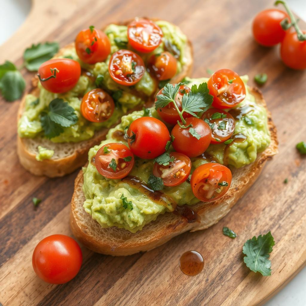 Denne oppskriften minner meg om en ferie i Italia, hvor jeg ble servert klassisk bruschetta på en liten trattoria. Jeg tok ideen hjem og gjorde den til min egen ved å tilsette avokado for et sunnere og mer mettende alternativ. Et tips er å bruke godt modnet avokado – det gir den beste kremete konsistensen. Når jeg vil gjøre retten mer luksuriøs, topper jeg den med litt revet parmesan eller et dryss av ristede nøtter. Jeg elsker å servere dette som en lett lunsj med en frisk salat ved siden av. Bruschettaen vekker alltid begeistring rundt bordet!