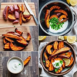 Søtpotetbåtene får en gyllen og lett karamellisert overflate etter grilling, og innsiden forblir myk og kremet. Smaken er rund og søt, men med et lite sting av røkt paprika og salt som gir dybde. Når du dypper dem i urtedippen, skjer det noe magisk – syrligheten fra yoghurten og friskheten fra urtene balanserer sødmen perfekt. Jeg liker å bruke fersk sitronskall i dippen – det gir en herlig aroma og løfter retten til nye høyder. Det hele er en fryd både for smaksløkene og øynene.
