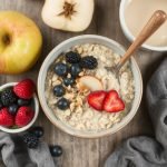 Denne havregrøten har en fantastisk kremet tekstur som smelter i munnen. Eplene gir en mild, naturlig sødme, mens kanelen tilfører en deilig varme og krydret dybde. Den myke konsistensen av havregrynene kombineres perfekt med den lette crunchen fra chiafrøene, som gir grøten både fiber og et sunnere fettinnhold. Friske bær på toppen gir en fin syrlighet og farger den kremete grøten med livlige nyanser, noe som gjør det til en visuelt tiltalende og smakfull rett.