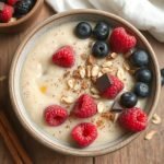- Hell grøten i skåler og topp med friske bær som blåbær, jordbær eller bringebær for ekstra smak og en frisk kontrast.