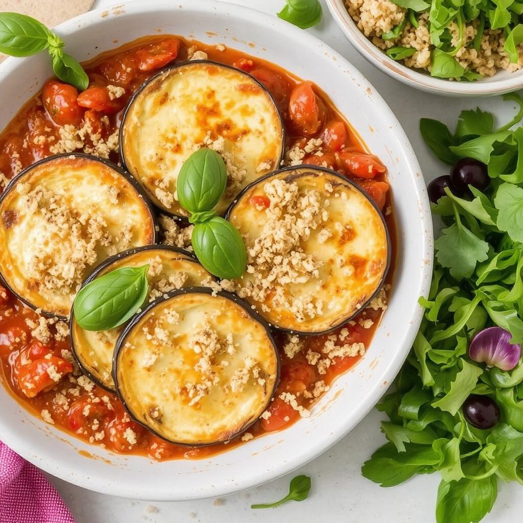 Denne retten med aubergine er inspirert av tradisjonell middelhavsmat, der auberginen er en sentral ingrediens. Retten har blitt populær på grunn av dens enkle, men smakfulle kombinasjon av aubergine, tomater og urter. Jeg oppdaget denne retten da jeg reiste til Spania for første gang, og har siden tilpasset den til min egen smak. Ved å bruke havrefløte i stedet for fløte og quinoa for å tilføre ekstra tekstur, har jeg gjort retten både sunnere og mer næringsrik, samtidig som den beholder de klassiske smakene som gjorde den så god.