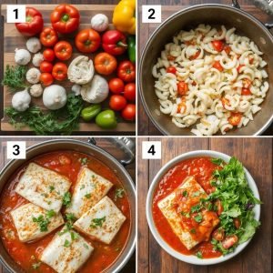 Jeg elsker hvordan smakene i denne retten utfyller hverandre. Klippfisken er saftig og flakete, med en mild salt smak som trekker til seg sausen på en nydelig måte. Piperradaen gir et perfekt samspill av sødme fra paprikaene, lett syrlighet fra tomatene og et lite sting av røkt paprika og hvitløk. Løken gir en myk fylde, mens olivenoljen runder av med sin fruktige dybde. Når alt får småputre sammen, utvikler smakene seg og gir en herlig intens og varmende aroma. Retten er både lett og mettende, med en god balanse mellom proteiner, fiber og sunne fettstoffer.