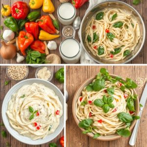 Denne retten med kremet fullkornspasta og friske grønnsaker har sin opprinnelse i den italienske matkulturen, hvor pasta er en hverdagsklassiker. Over tid har pasta blitt tilpasset mange varianter, og denne sunne utgaven uten kjøtt er blitt en favoritt blant dem som ønsker et lettere måltid uten å gå på kompromiss med smaken. Fullkornspastaen gir et nytt og deilig preg, og den plantebaserte sausen gir både fylde og en silkemyk tekstur. Jeg personlig har alltid hatt en forkjærlighet for pasta, og når jeg begynte å lage sunnere alternativer, var dette en oppskrift som falt i smak hos både meg og familien.