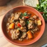 Denne gryteretten byr på en balansert og fyldig smak. Den syrlige tomatbaserte sausen harmonerer perfekt med sødmen fra gulrøtter og paprika, mens urter som timian og oregano gir retten et hint av middelhavsaroma. Teksturen er variert – mørt kjøtt som smelter i munnen, grønnsaker som gir en fin tyggemotstand, og en saus som binder det hele sammen. Dette er en rett som gleder både ganen og magen!