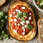 Sunn ovnsbakt aubergine med krydret tomatsaus