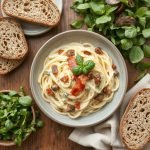 - Servering: Server pastaen med et dryss frisk basilikum og eventuelt litt revet plantebasert eller vanlig parmesan. Server gjerne med en grønn salat og litt grovt brød.