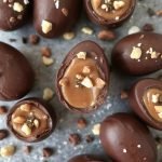 Bløtlegg dadlene i varmt vann i 10 minutter, sil av og kjør dem til en jevn krem med kokosmelk, vanilje og havsalt.Fyll sjokoladeegg