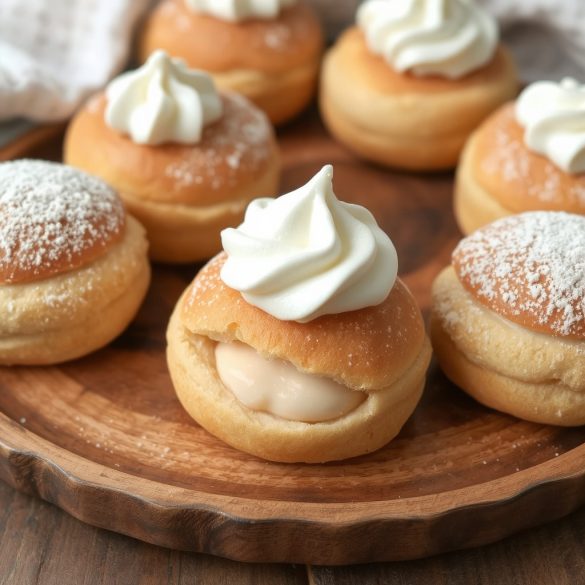 Ytterst har semlene en gyllen, lett sprø overflate, som gir en deilig kontrast til det myke fyllet. Lukten av kardemomme og fersk gjærbakst fyller kjøkkenet og gir en følelse av hygge og tradisjon, med et lite hint av fornyelse. Toppet med en liten kremklatt av lett pisket krem eller plantebasert alternativ, og et dryss av melis eller steviapulver, blir disse minisemlene en fest for både øyne og gane.