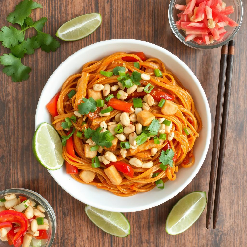 Servering: Fordel nudlene på tallerkener, topp med peanøtter, vårløk og koriander. Server med limebåter for ekstra friskhet.