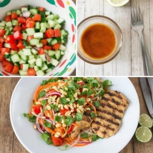 Thaiinspirerte salater, kjent som Yam i Thailand, er kjent for sine eksplosive smaker og harmoniske balanse mellom søtt, syrlig, salt og sterkt. Disse salatene inneholder ofte en kombinasjon av sprø grønnsaker, friske urter og en dressing laget av lime, fiskesaus og chili. Denne typen salat er perfekt som en lett lunsj, forrett eller som tilbehør til grillet kjøtt eller sjømat. Jeg elsker denne retten fordi den gir en frisk og smakfull opplevelse som minner meg om det varme og livlige thailandske kjøkkenet.