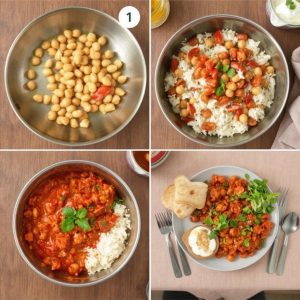 Tomatris med kikerter har en fantastisk balanse av smak og tekstur. Den myke risen absorberer den fyldige tomatsausen, mens kikertene gir et lett nøtteaktig preg og litt tyggemotstand. Hvitløken og løken gir retten et aromatisk løft, og olivenoljen tilfører en silkemyk tekstur og rik smak. Resultatet er en varm og trøstende rett med friske, syrlige toner.
