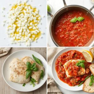 Torsken er saftig og mør med en mild smak som absorberer tomatsausens herlige aromaer. Den enkle tomatsausen er syrlig og fyldig med sødme fra løk og hvitløk, balansert av den friske smaken fra basilikum og sitron. Konsistensen på retten er fløyelsmyk fra fisken, med et hint av friskhet og syrlighet fra sausen. Jeg elsker hvordan hver bit smelter sammen til en harmonisk og tilfredsstillende smaksopplevelse.