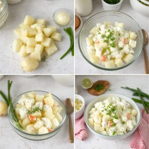 Kort Historie: Potetsalat med rømme har vært en fast følgesvenn på norske bord i generasjoner, særlig til sommerfester, grillkvelder og 17. mai-feiring. Rømmen gir en frisk og syrlig smak som balanserer de myke potetene, noe som gjør den perfekt som tilbehør. Jeg elsker hvordan denne tradisjonelle retten er enkel å lage, men alltid imponerer.