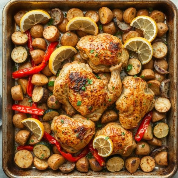 Tray bake med kylling har saftige og smakfulle kyllingbiter med sprøtt skinn, kombinert med myke og karamelliserte grønnsaker. Krydder som rosmarin og paprika gir retten en varm og aromatisk smak. Jeg elsker hvordan de ulike elementene smelter sammen i ovnen, og skaper en rett som både er rik og balansert.