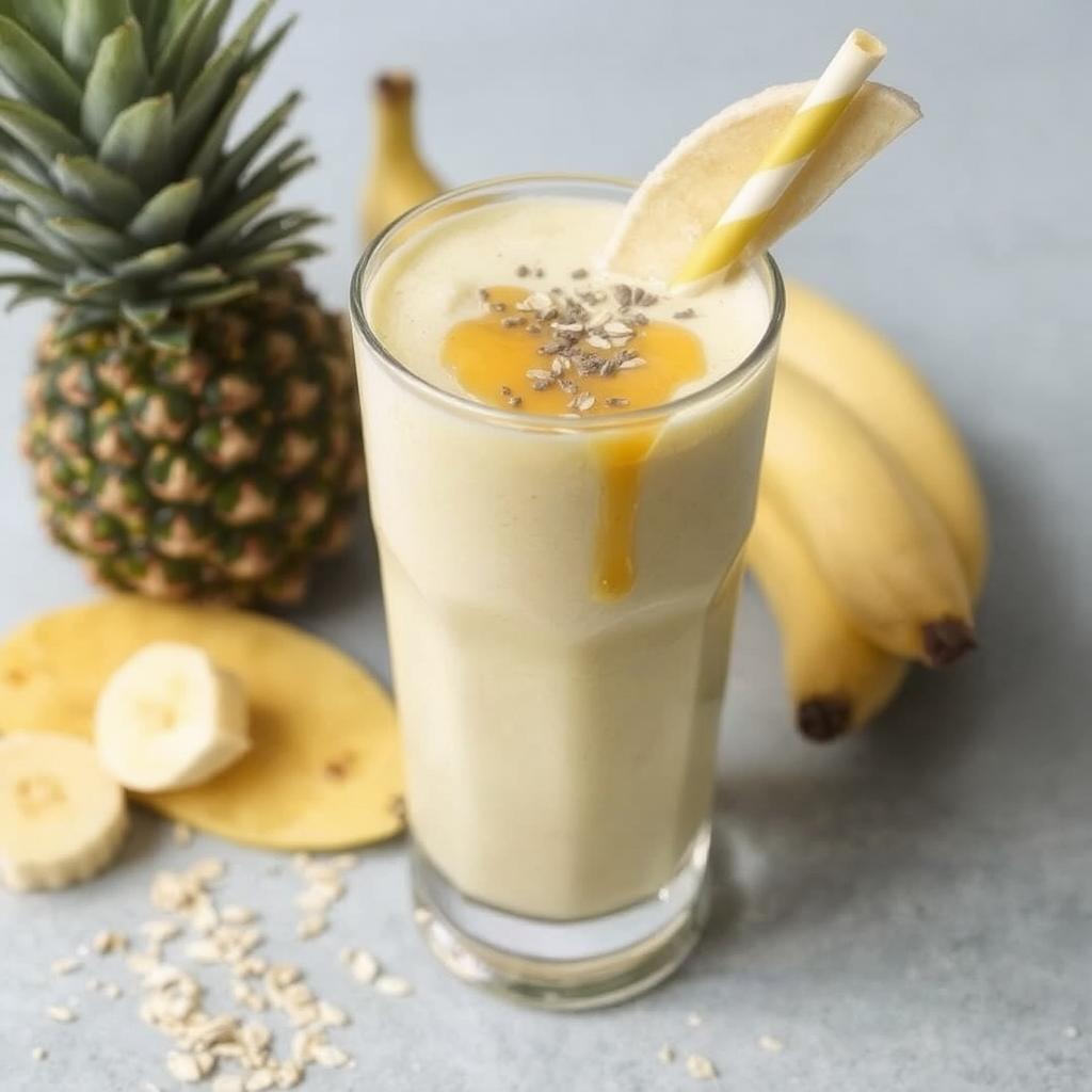 eg laget denne ananas smoothien første gang da jeg ønsket en frisk og næringsrik måte å starte dagen på. Den søte ananasen gir en tropisk smak, og havre gir smoothien en deilig kremet tekstur. Jeg har alltid hatt lyst til å lage en smoothie som både er sunn og smakfull, og denne ble umiddelbart en favoritt. Kombinasjonen av frukt og havre fungerer utrolig godt, og jeg har fått mange positive tilbakemeldinger fra familien. Nå er den en fast del av min ukentlige frokostrutine – enkel, rask og full av energi!