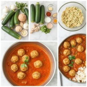 Zucchiniboller i krydret saus er en eksplosjon av smaker. Bollene er myke og saftige, med et hint av sødme fra zucchini og aromatiske toner fra hvitløk og urter. Sausen tilfører en intens krydret varme og silkemyk tekstur som komplementerer bollene perfekt. Hver bit gir en tilfredsstillende balanse av krydder og friskhet.